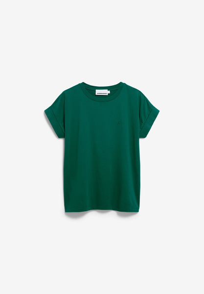 Our absolute bestseller: the IDAARA T-shirt. With its loose, relaxed fit, medium-weight jersey fabric made from soft organic cotton and a small embroidered logo, it is comfortable to wear. Perfect for everyday wear and versatile - a real must-have!