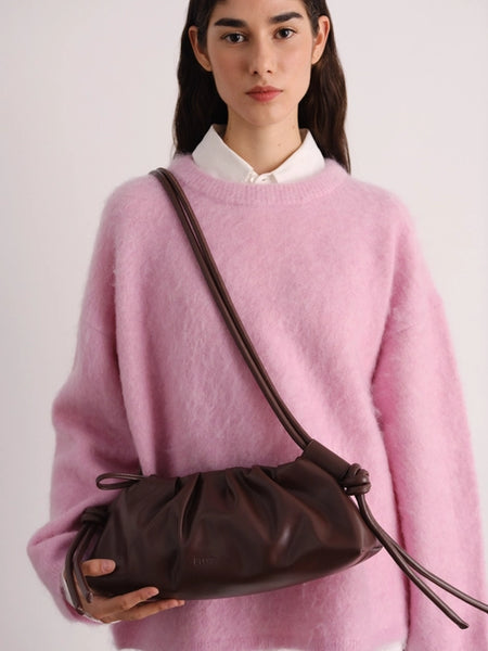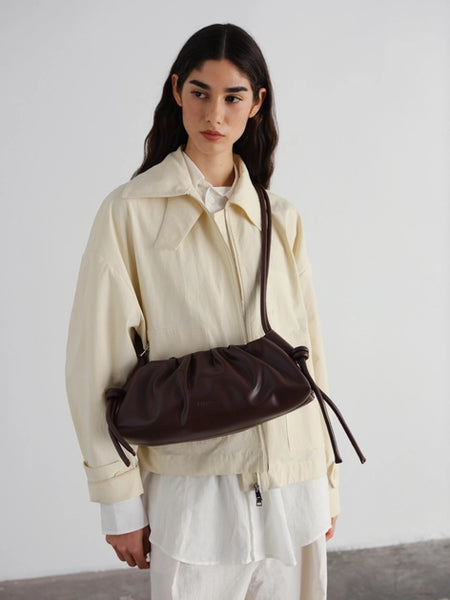 Featuring a unique double-handle system, the Dumpling Bag can be carried in multiple ways, with adjustable knots adding a personalized touch.