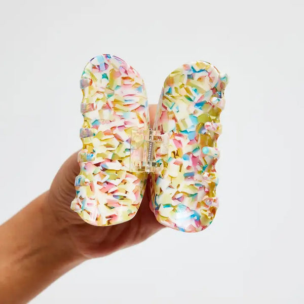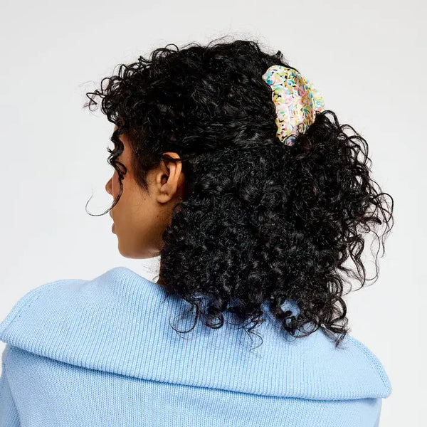 This medium sized hair claw is super versatile and works for all hair types and textures. Made from high quality acetate; a durable, plant based bio-plastic. Metal hardware is lead and nickel-free.