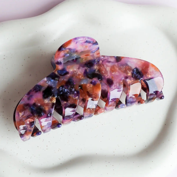 Rounded hair clip in mauve and pearly shades. The Agatha is strong and is able to hold the densest hair.