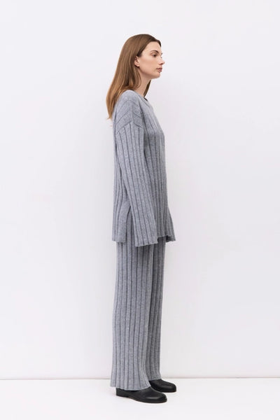 The Dakota Pants are midweight, thick ribbed knit lounge pants with an elastic waist for comfort. They feature a relaxed, flared fit for easy movement. Designed to be worn as a set with the Dakota Sweater.