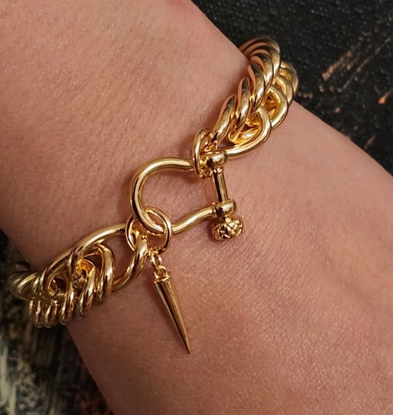 Horse Bit carabiner opens to hold your charms. This is the Updated Equestrian Charm Necklace. Cuban Steel Chain. Lays flat on the wrist.