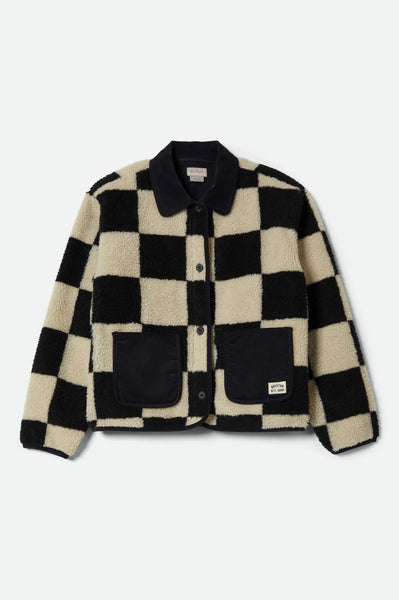 Keep cozy all season in Brixton's Delilah Sherpa Jacket. A bold multi-color plaid print makes a statement, embellished with corduroy trim detailing along the collar, cuffs, and hem. Patch pockets, one branded with Brixton's signature Woodburn woven label, add fun and functionality to this warm outer layer.