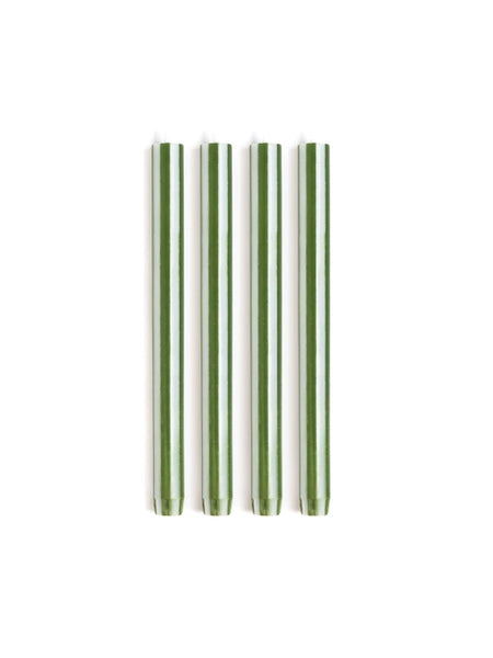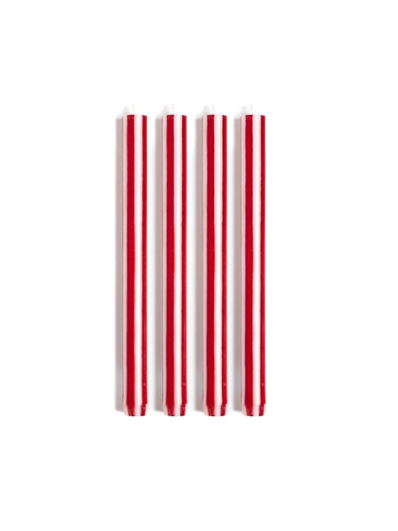 Hand poured Stripe Dinner Candles 24cm /9.44". We are proud to say these are Fairtrade candles, made from 100% Stearin Wax. Available in a variety of colourways, sold in box set of 4. Due to the handmade nature there will be some slight variations.