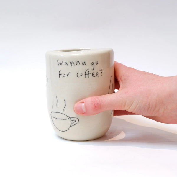 This playful designs features drawings of little things that make me happy! The patchwork cup is perfect for on the go or for bringing to a cafe!