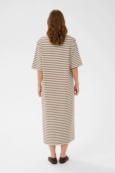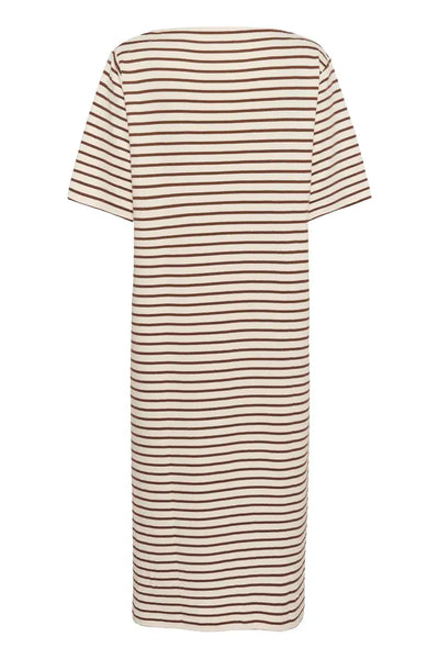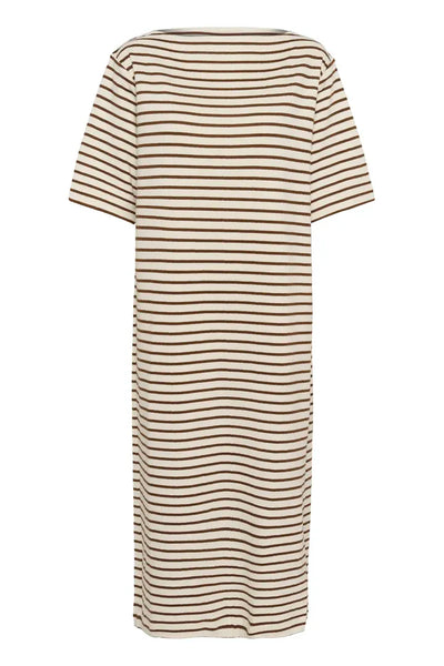 Ingina Boatneck Dress - White/Cappuccino Stripe
