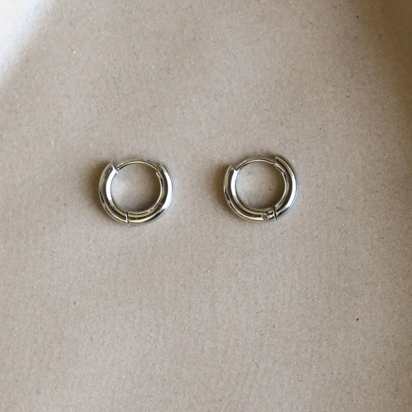 Stainless steel hoop earrings. These small sleepers are comfortable, lightweight, and perfect for 2nd and 3rd holes.