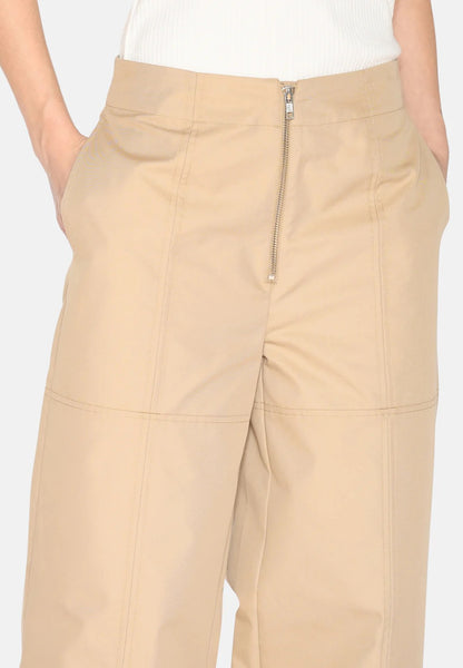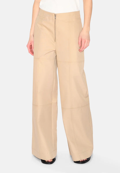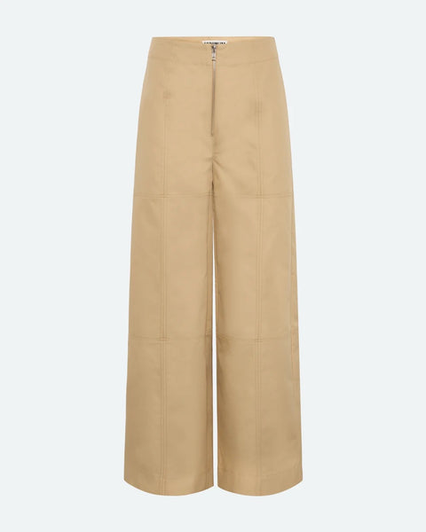 Make way for timeless style with these wide-leg trousers in beige canvas. Made from a durable blend of cotton and nylon, our Cecilia trousers combine functionality and design. The contrasting stitching highlights the elegant cut, while the smart front zip closure adds a modern and practical detail.