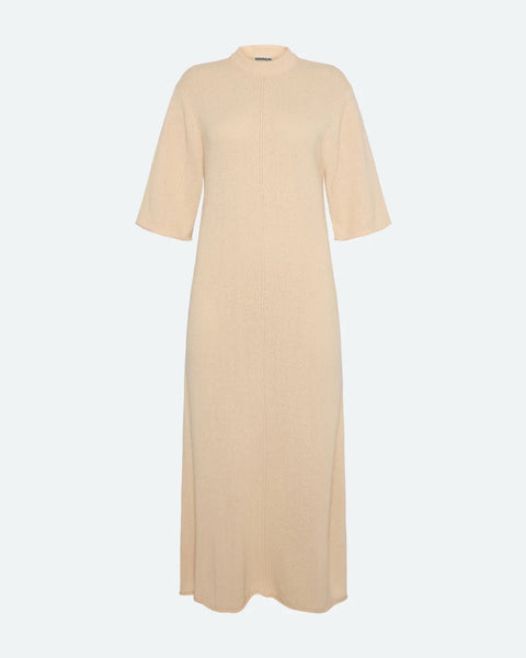 Indulge your wardrobe with our Gianna knitted maxi dress that combines Scandinavian design and timeless elegance. This long dress with short sleeves and a round neck is made of a soft, lightweight material that provides a flattering fit and maximum comfort - perfect for both everyday and party wear.