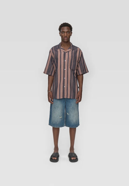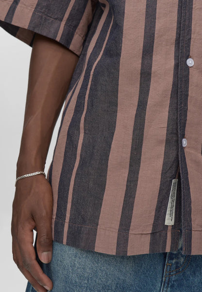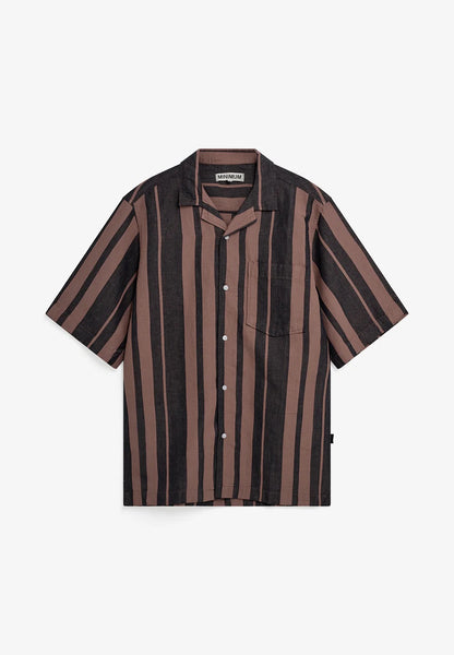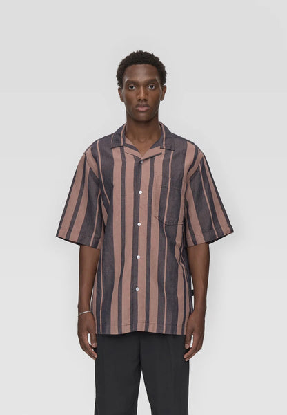This short-sleeve button-up shirt features a relaxed fit with a classic resort collar and a clean, minimal design. Made in a soft cotton linen mix, it includes a front chest pocket. Perfect for everyday wear or easy layering.