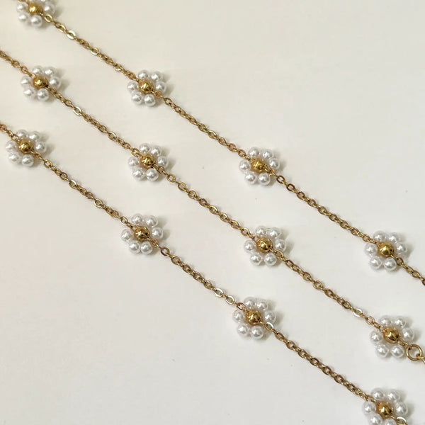 A stunning necklace featuring a beautiful array of pearls arranged in the shape of a blooming flower.