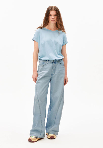 Our absolute bestseller: the IDAARA T-shirt. With its loose, relaxed fit, medium-weight jersey fabric made from soft organic cotton and a small embroidered logo, it is comfortable to wear. Perfect for everyday wear and versatile - a real must-have!