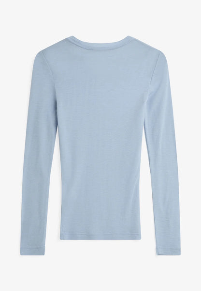 Natashas is a long sleeved jumper made from 100% merino wool for a soft and comfortable quality. The jumper has a tight fit and is designed with a round neck. The model is 180 cm tall and wears a size small.