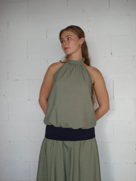 Meet our new Serene Top - a top that doubles as a mini dress, featuring tie halter straps, bubble silhouette & stretchy waistband.