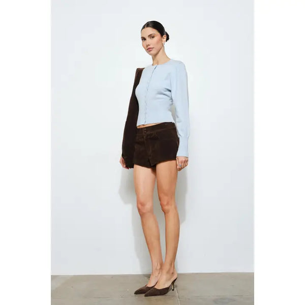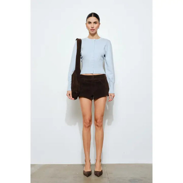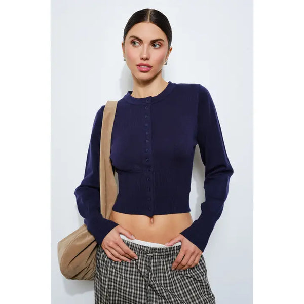 A sophisticated take on a classic silhouette, the Cassandra cardigan features a fitted, body-skimming shape. A full snap button-down front and fitted bodice make it a perfect stand-alone top or versatile layering piece.