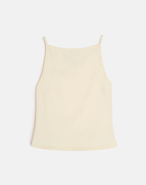 The Dudley vest top in a buttermilk fabric. Boasting a bodycon fit with a boat neckline and cami straps.