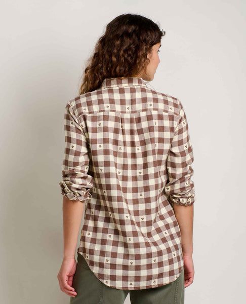 A flannel shirt fit for an outdoor queen. Ours is a lightweight herringbone weave available in epic color combos made better by recycled polyester