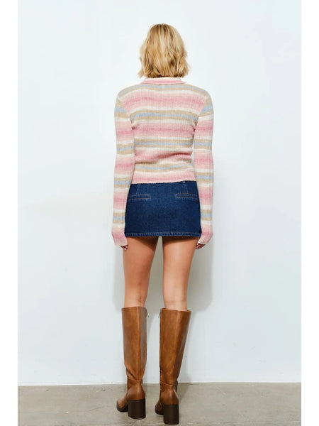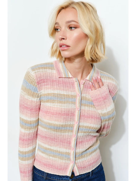 Refresh wardrobe basics with the Alison Ribbed Polo—a comfy ribbed knit design featuring classic stripes, a relaxed collar, and button front for easy style. The long sleeves and soft feel is perfect for layering or solo wear.