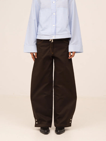 With a loose, flowing silhouette, these jeans stand out for their relaxed fit and meticulous design. The adjustable snap closure at the hem allows you to play with the volume and personalize your style, adding a modern and functional touch. Made from durable and comfortable denim, they offer a flattering fit without sacrificing freedom of movement.