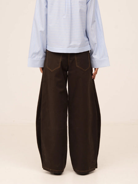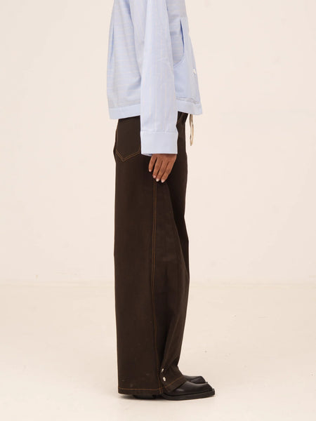 Wide-leg brown jeans with a contemporary feel, designed to elevate your everyday looks with a sophisticated touch.