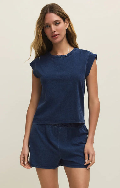 An easy cotton top gets an upgrade with cool sleeves and a denim look.