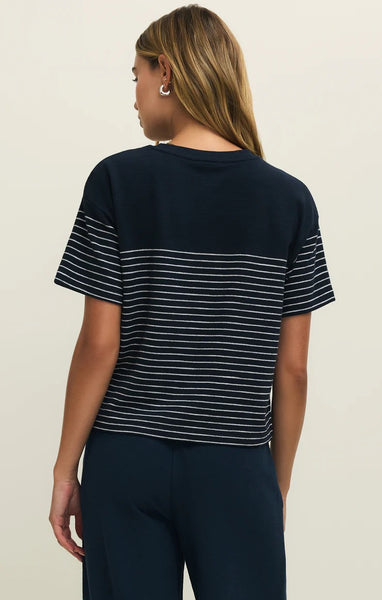 This striped top features a textured knit blend in a relaxed silhouette. Pair with the Andre Wide Leg Pant for your most comfortable outfit yet.