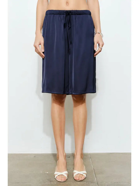 The Lily shorts offer sophisticated loungewear in luxe satin. This longline style features a comfortable drawstring waistband, practical side seam pockets, and a relaxed cut perfect for everyday wear.