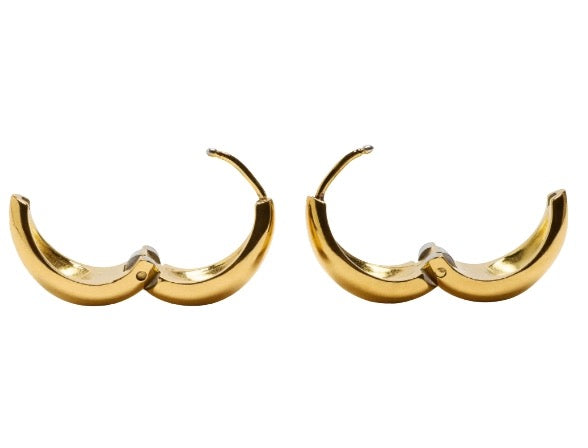 Hoop earrings Small Huggie Hinge open and close Wide Look Hinge closure. Sitting comfortably on the lobe. Lays flat