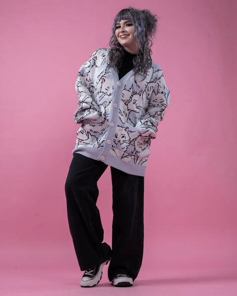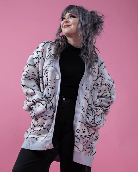 Modeled Size Guide This guide shows different models with various body types wearing the full range of XS through XXXL cardigans. Check it out for the best idea of how each size will fit.