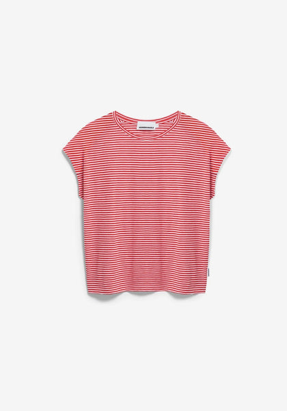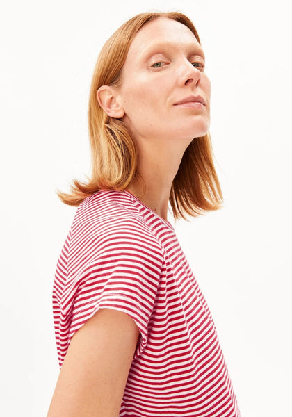 Slub Jersey Stripe T Shirt - Pink Mist/Mars Red